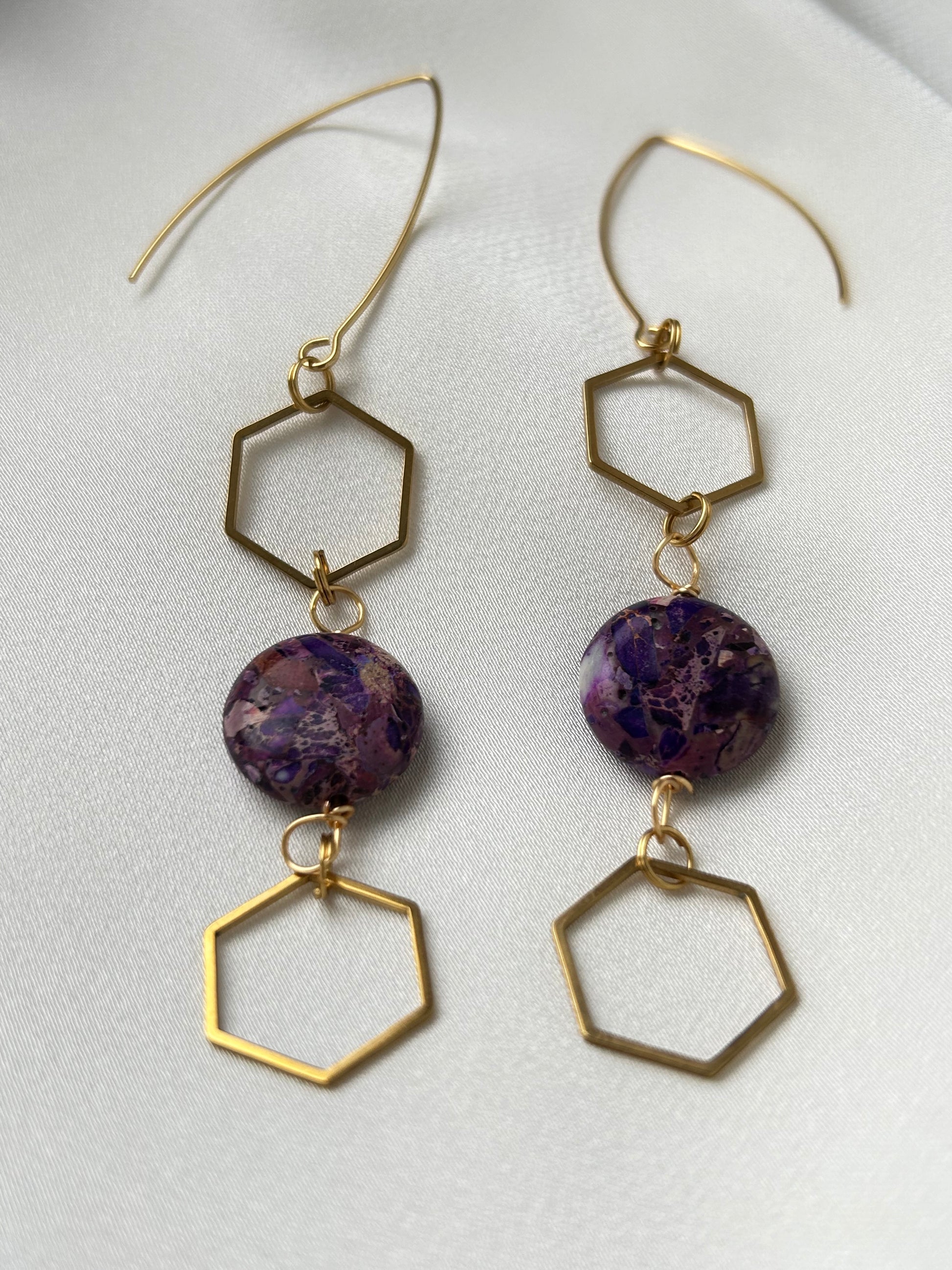 Earrings are made of natural jasper and stainless steel findings.