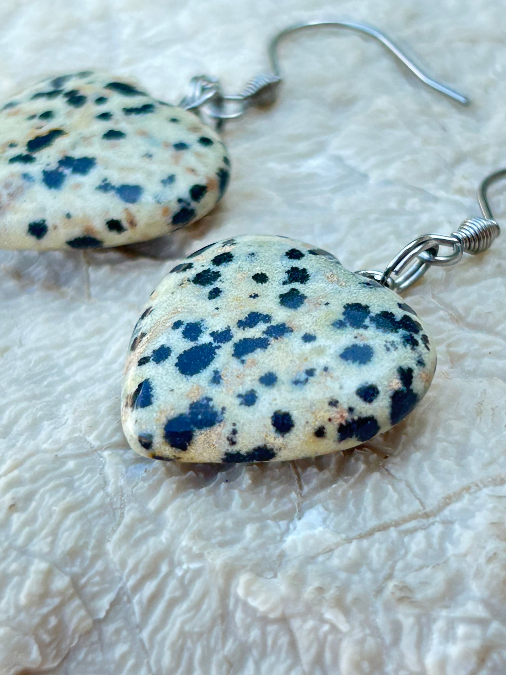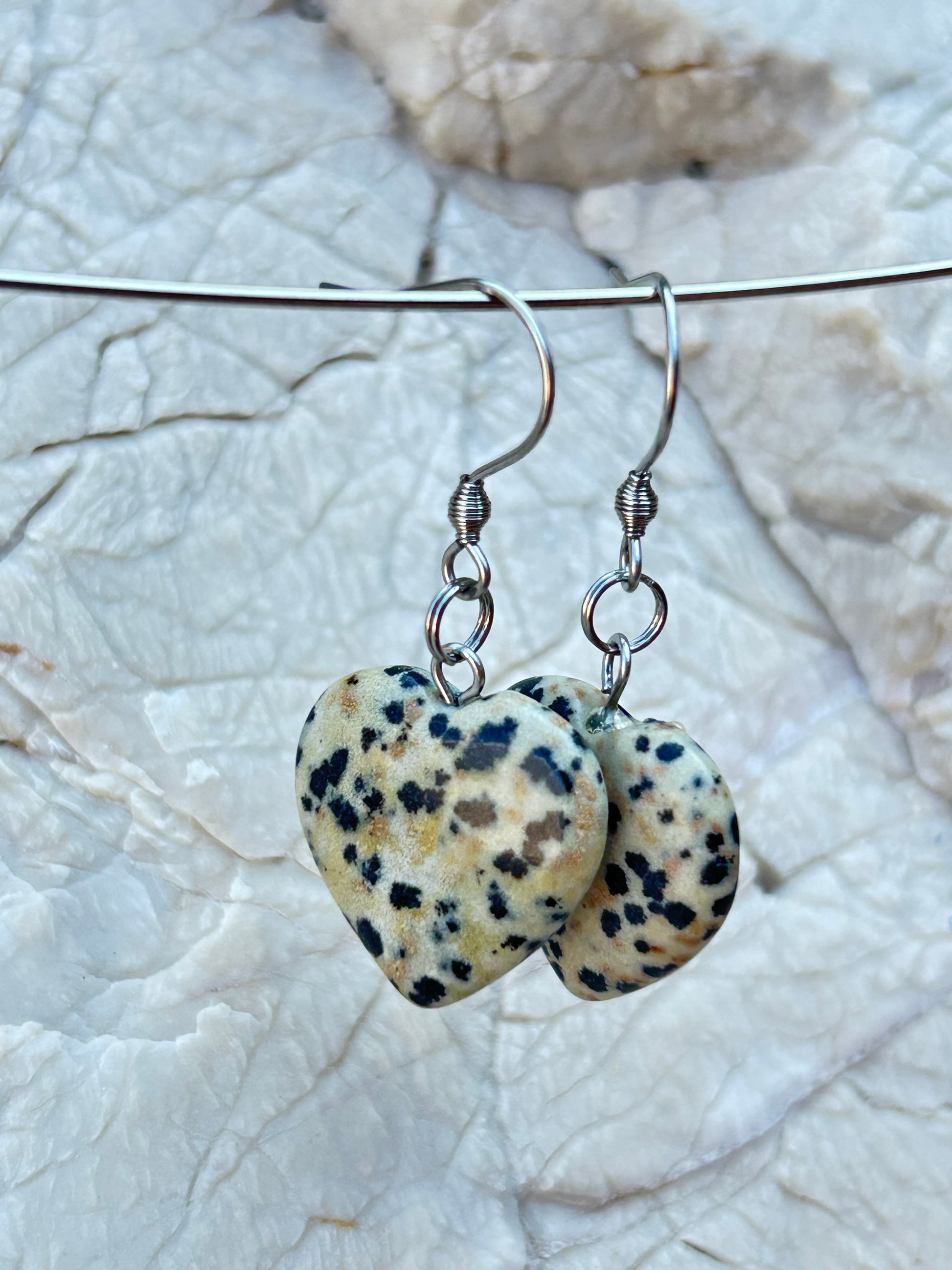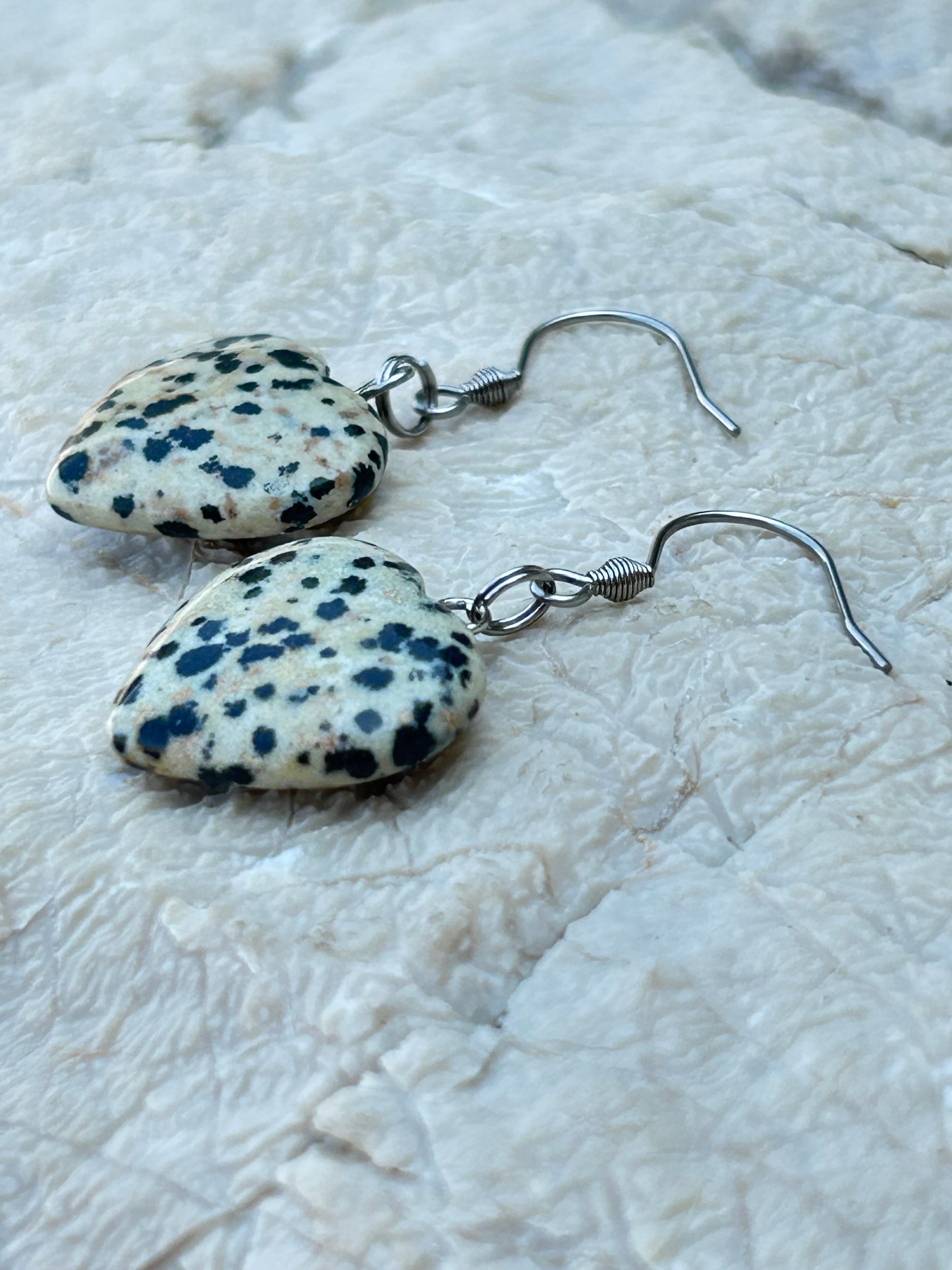 Earrings made of stainless steel earring findings and natural jasper pendant.