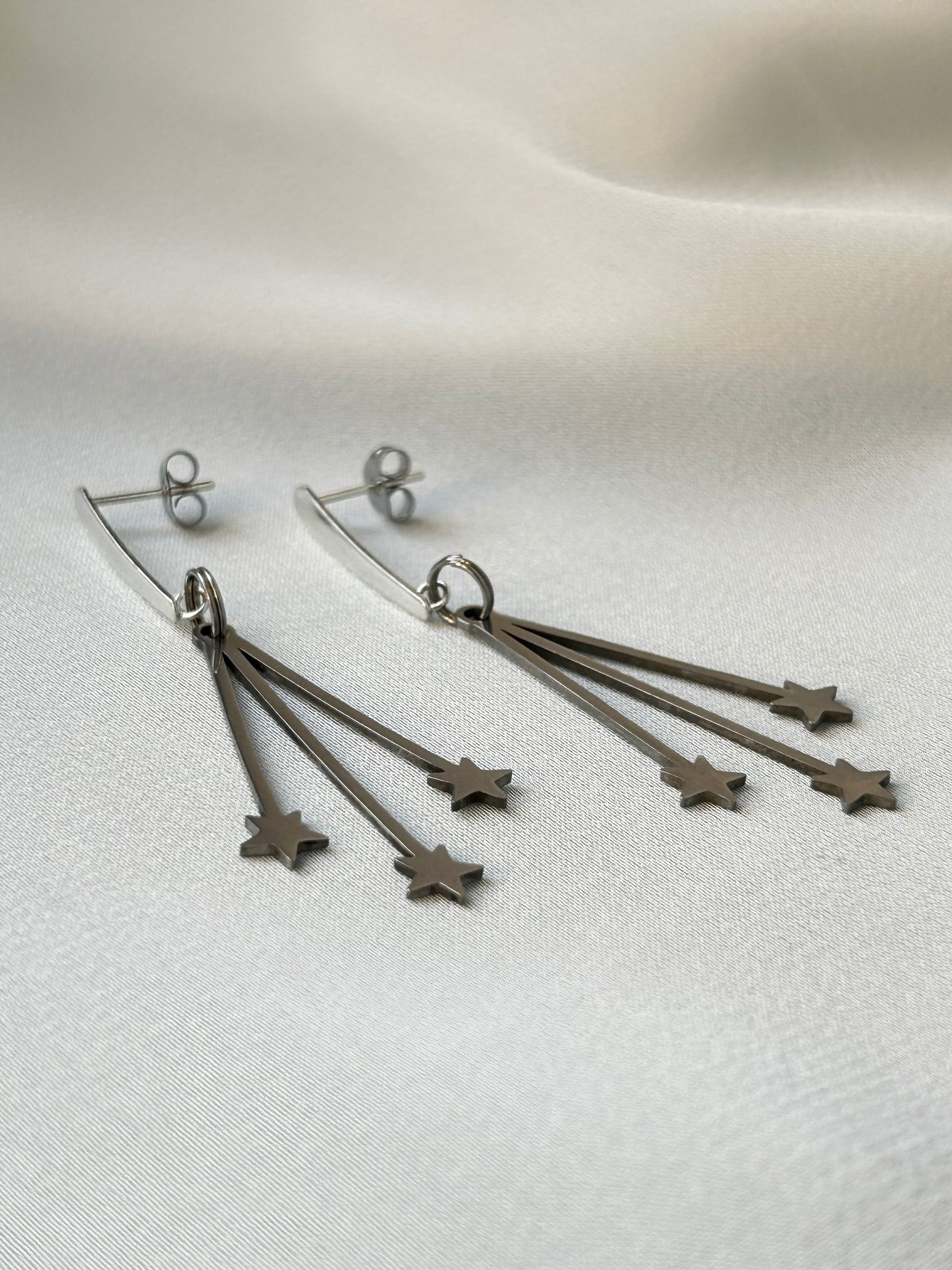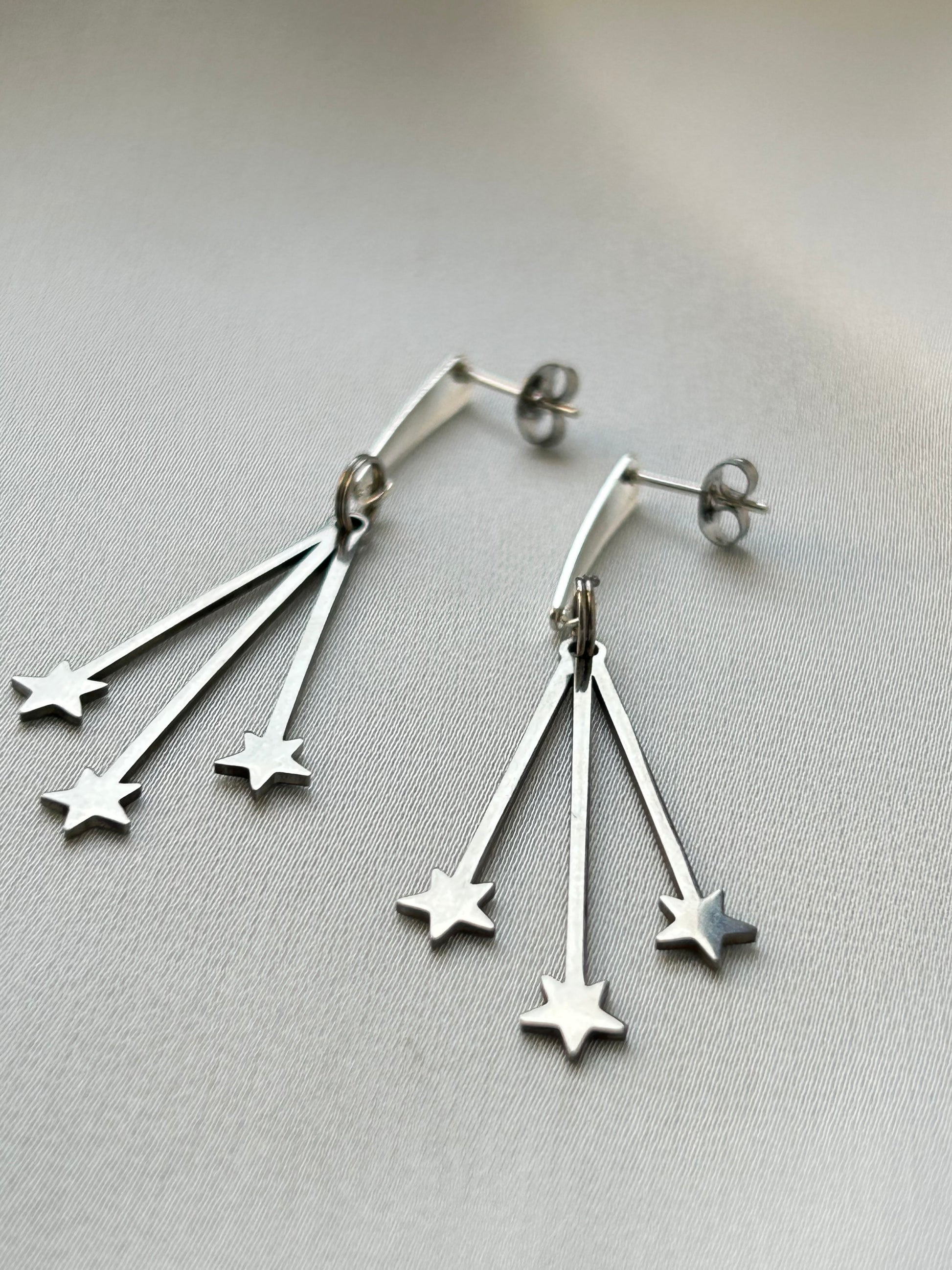 Earrings made of stainless steel findings and stainless steel star pendants.